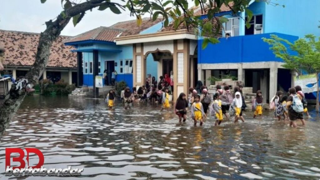 Kombinasi antara curah hujan tinggi dan rob membuat air sulit keluar dari kawasan sekolah. Hal ini menyebabkan aktivitas belajar kerap terganggu dan memerlukan penyesuaian terus-menerus.