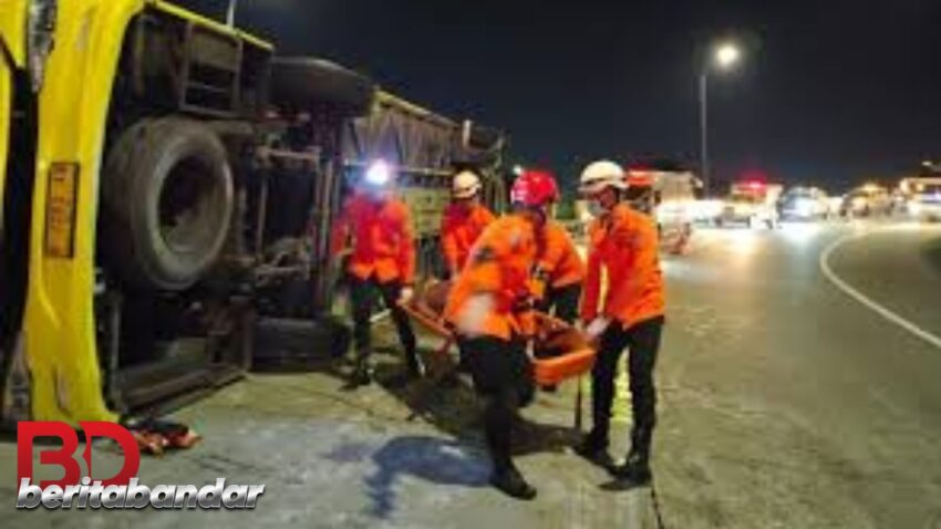 beritabandar.com Sebuah kecelakaan tunggal yang melibatkan satu unit bus penumpang terjadi di Exit Tol Krapyak, wilayah Semarang, dan menimbulkan duka mendalam bagi masyarakat. Peristiwa ini menjadi salah satu kecelakaan lalu lintas paling fatal di kawasan tersebut dalam beberapa waktu terakhir, dengan jumlah korban jiwa yang cukup besar.